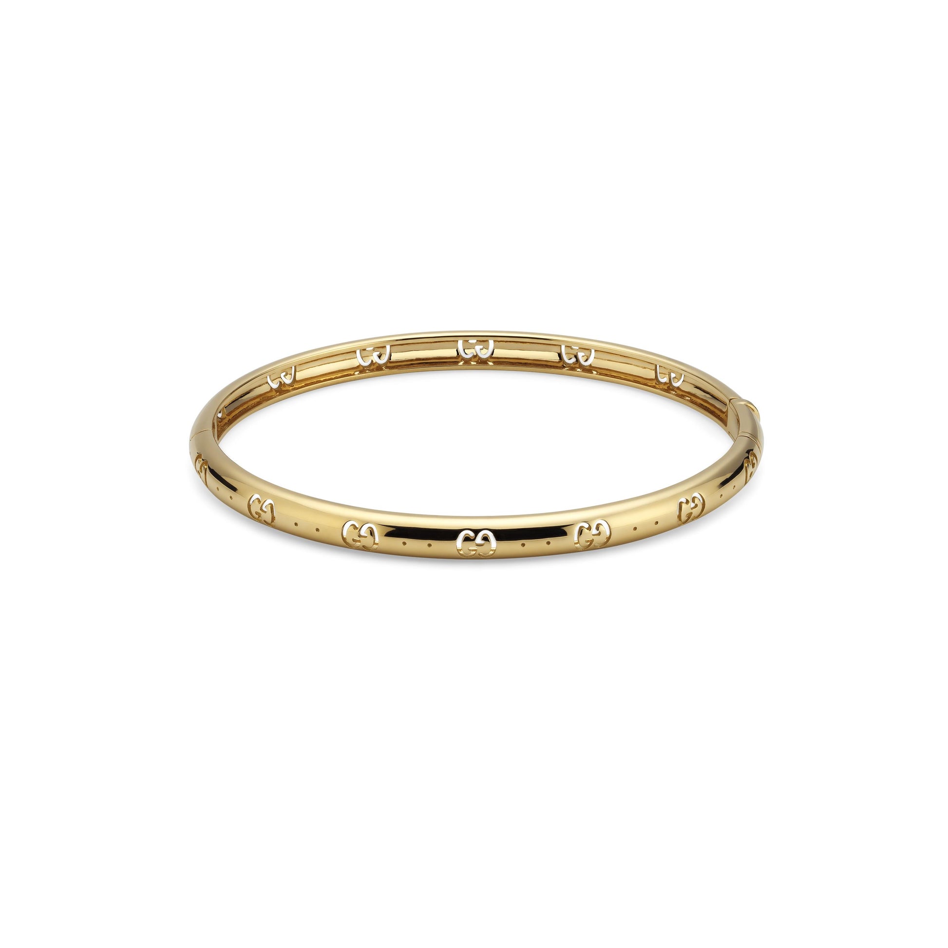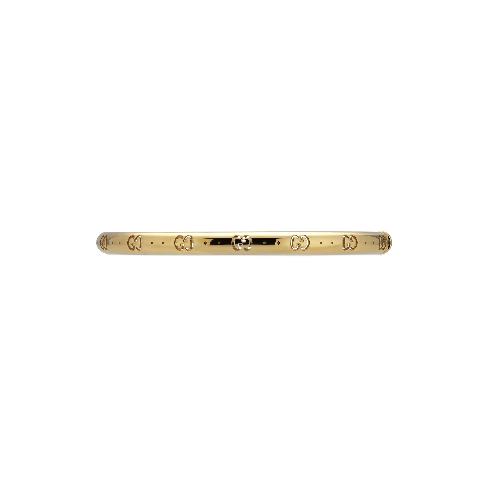 For the Fall Winter 2024 collection, the Icon jewelry collection presents a new GG cut-out motif on the rounded silhouettes. Set in 18K yellow gold, this Gucci Bangle features the brand's iconic GG emblem engraved into its rounded, smooth, and highly polished band.