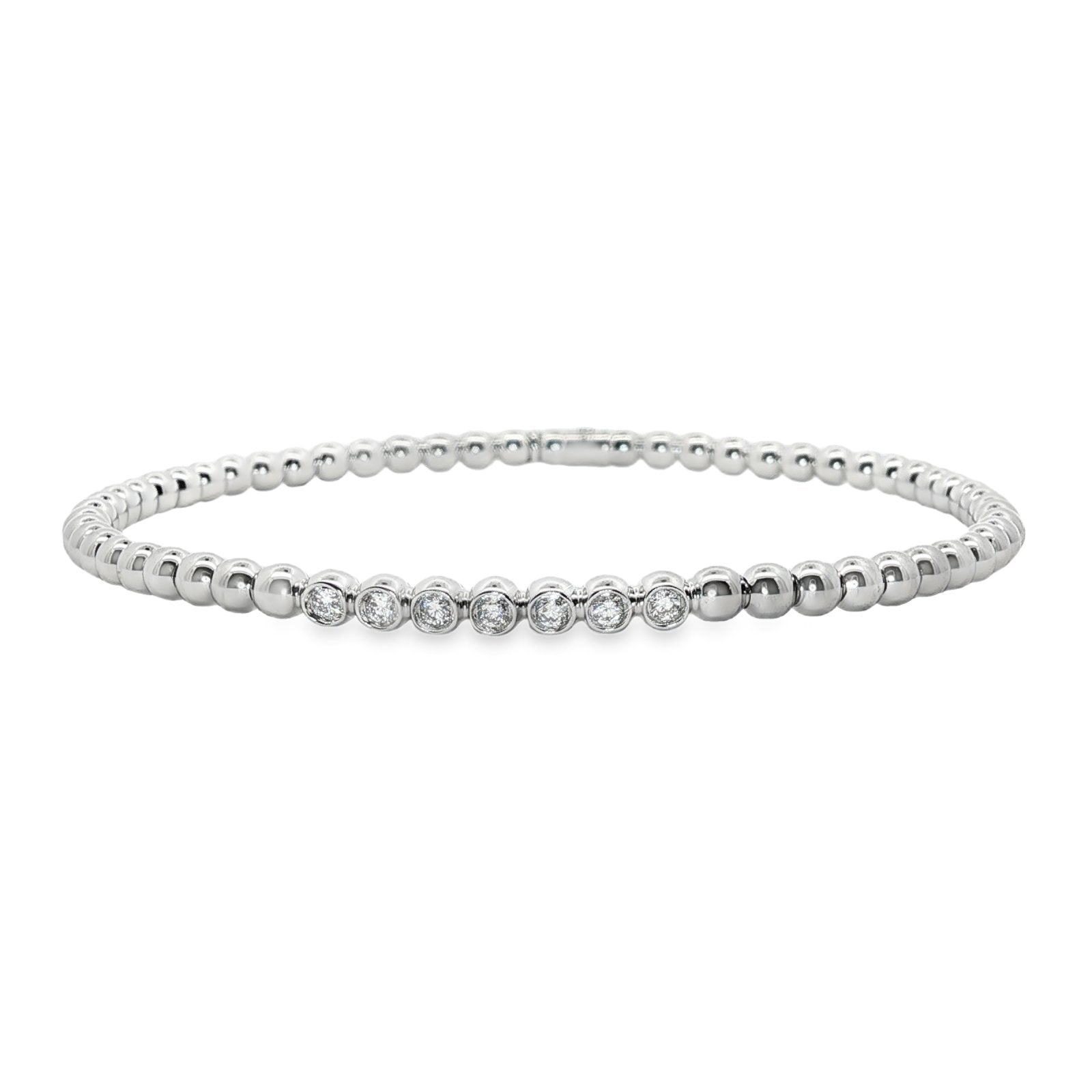Set in 18K white gold, this sparkling Belluni Tresore Bracelet features a flexible, beaded chain-like design adorned with seven diamonds weighing 0.15CTS.