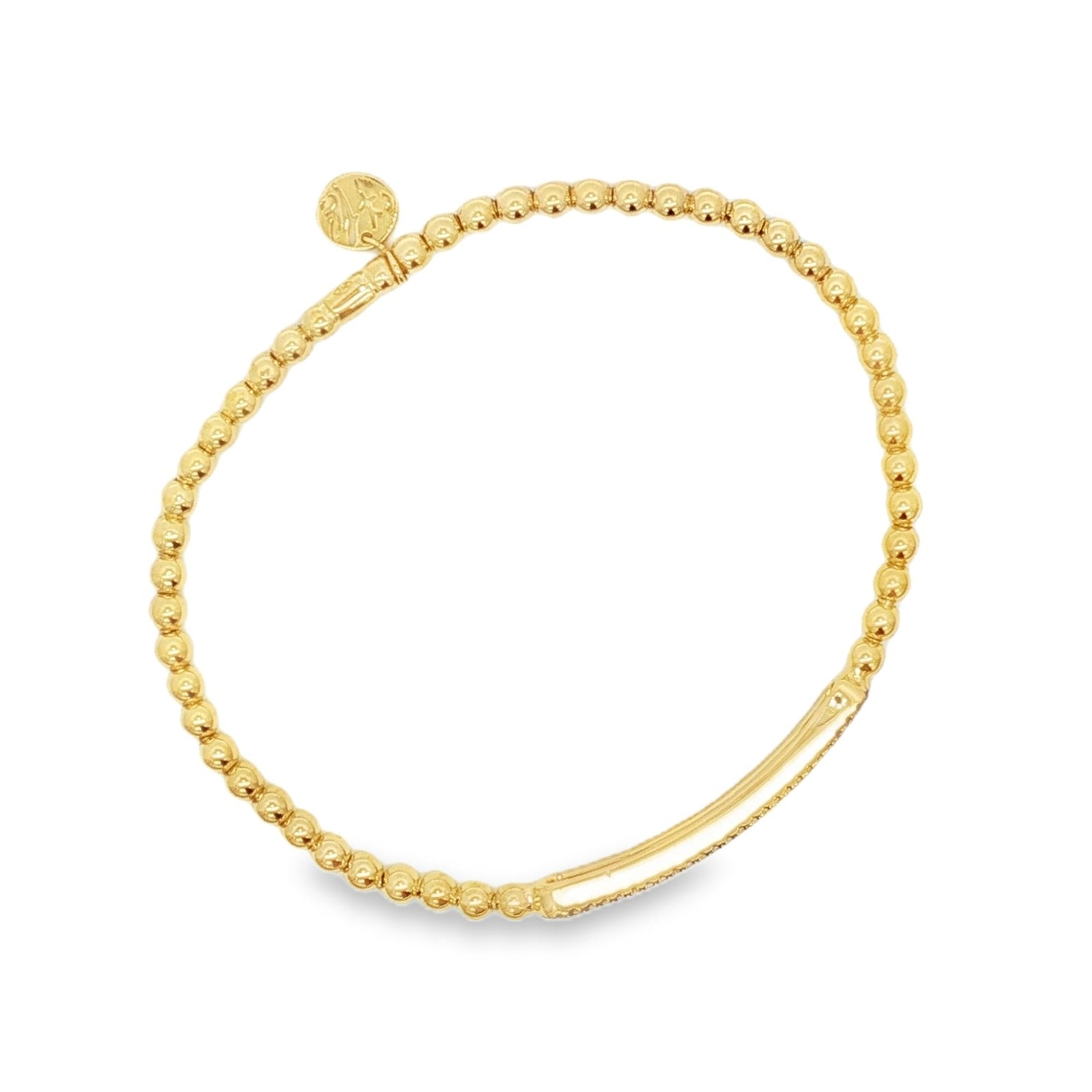 Set in 18K yellow gold, this sparkling Belluni Tresore Bracelet features a flexible, beaded chain-like design adorned with a bar of sixty-seven diamonds weighing a total of 0.92CTS.