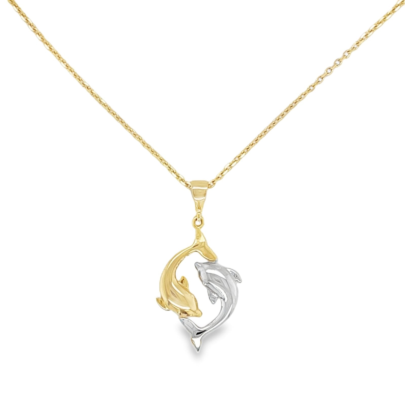 Jai's 14K Two-tone Swimming Dolphins Pendant