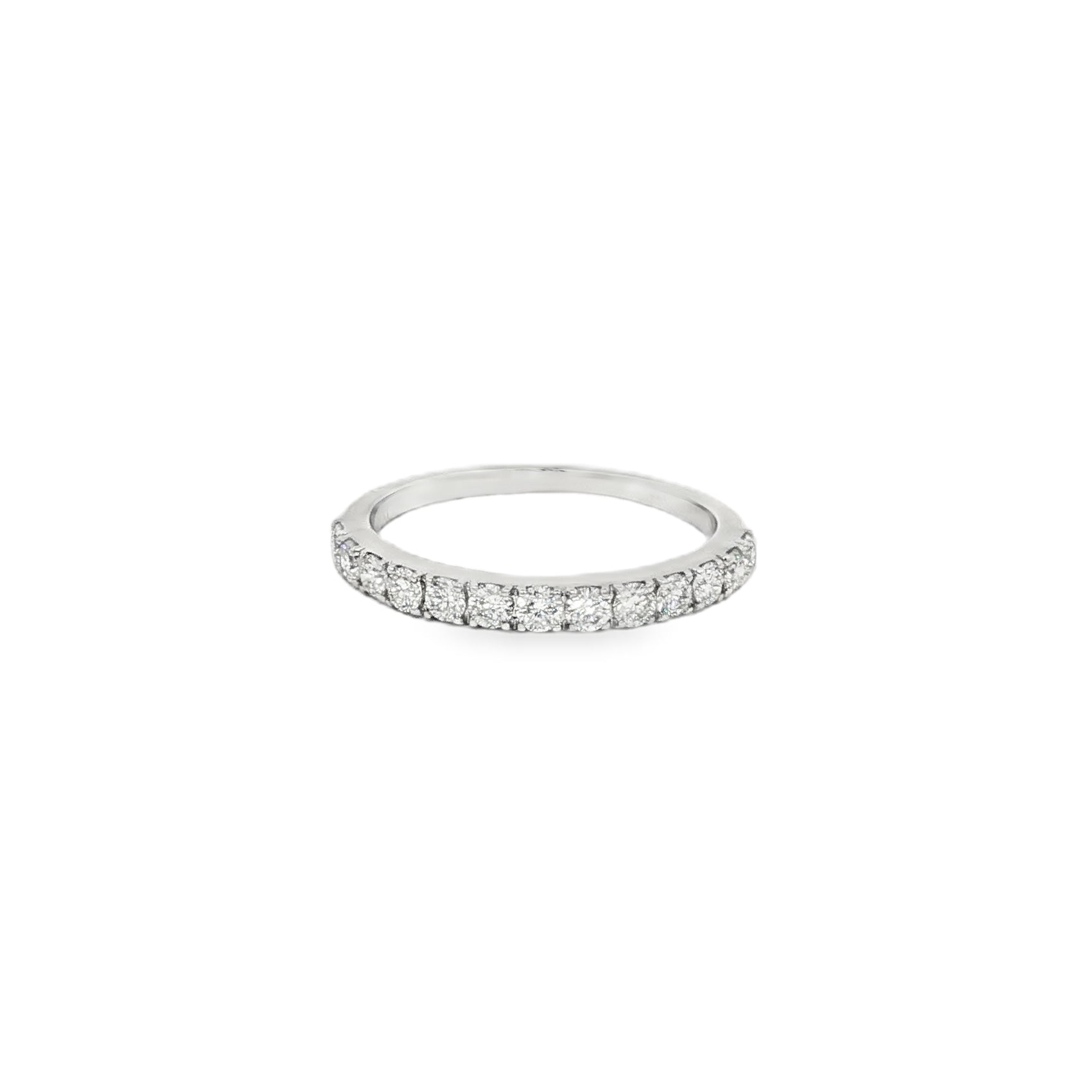 Set in 14K white gold, this Semi-pave Ring features a petite, smoothly polished, graduated band adorned with a series of thirteen sparkling diamonds weighing a total of 0.50CTS. For ring sizes, please inquire above.