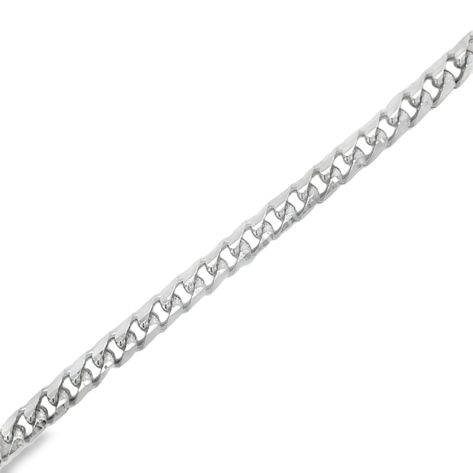 Set in 14K white gold, this Franco Chain Bracelet features fine, classically styled box-like and v-shaped links with a smooth and polished finish