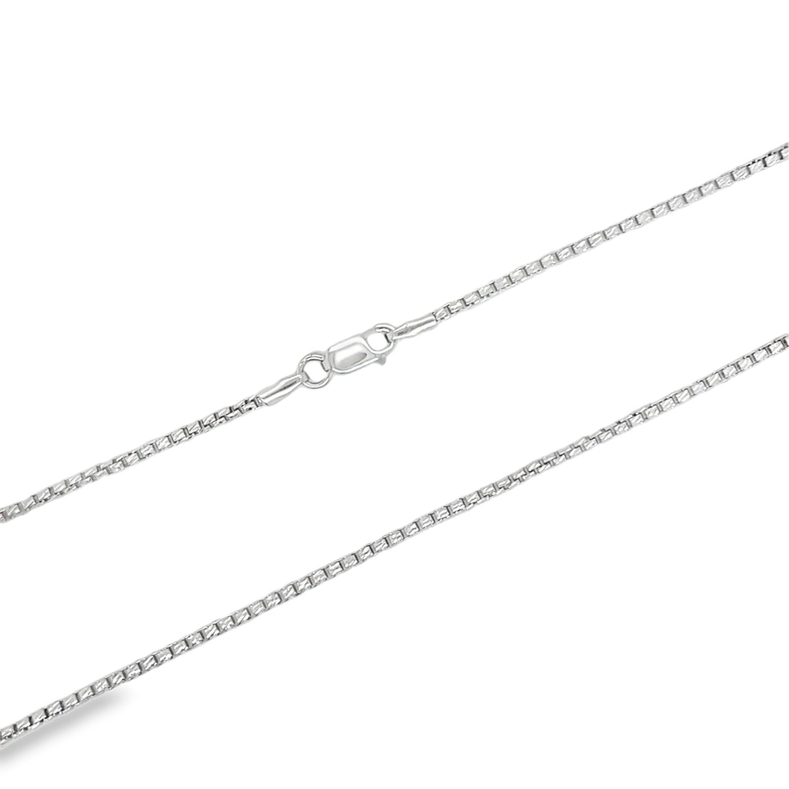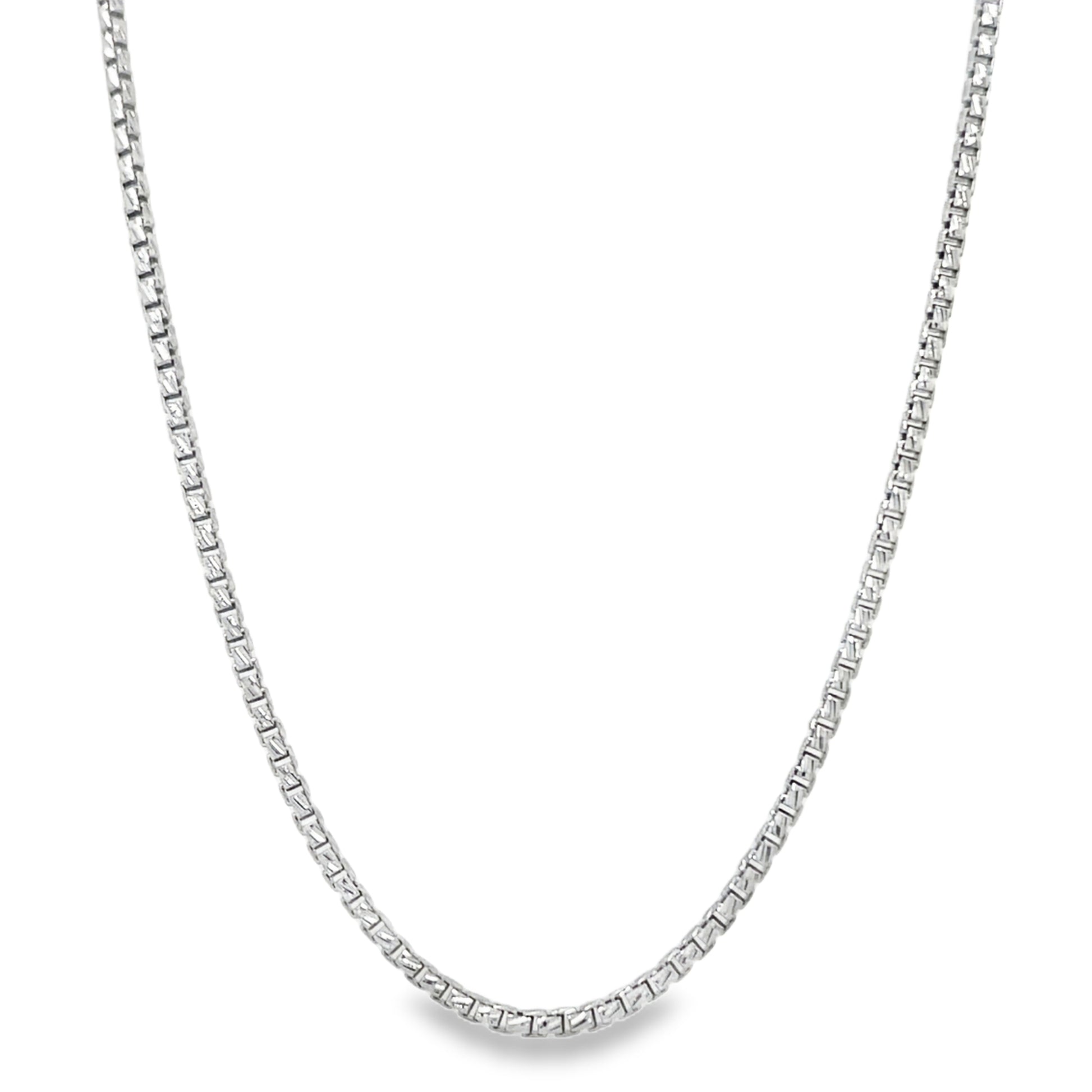 Set in 14K white gold, this Box Chain features fine box links with a smooth, highly polished finish—a subtle accessory for dressing up any look.