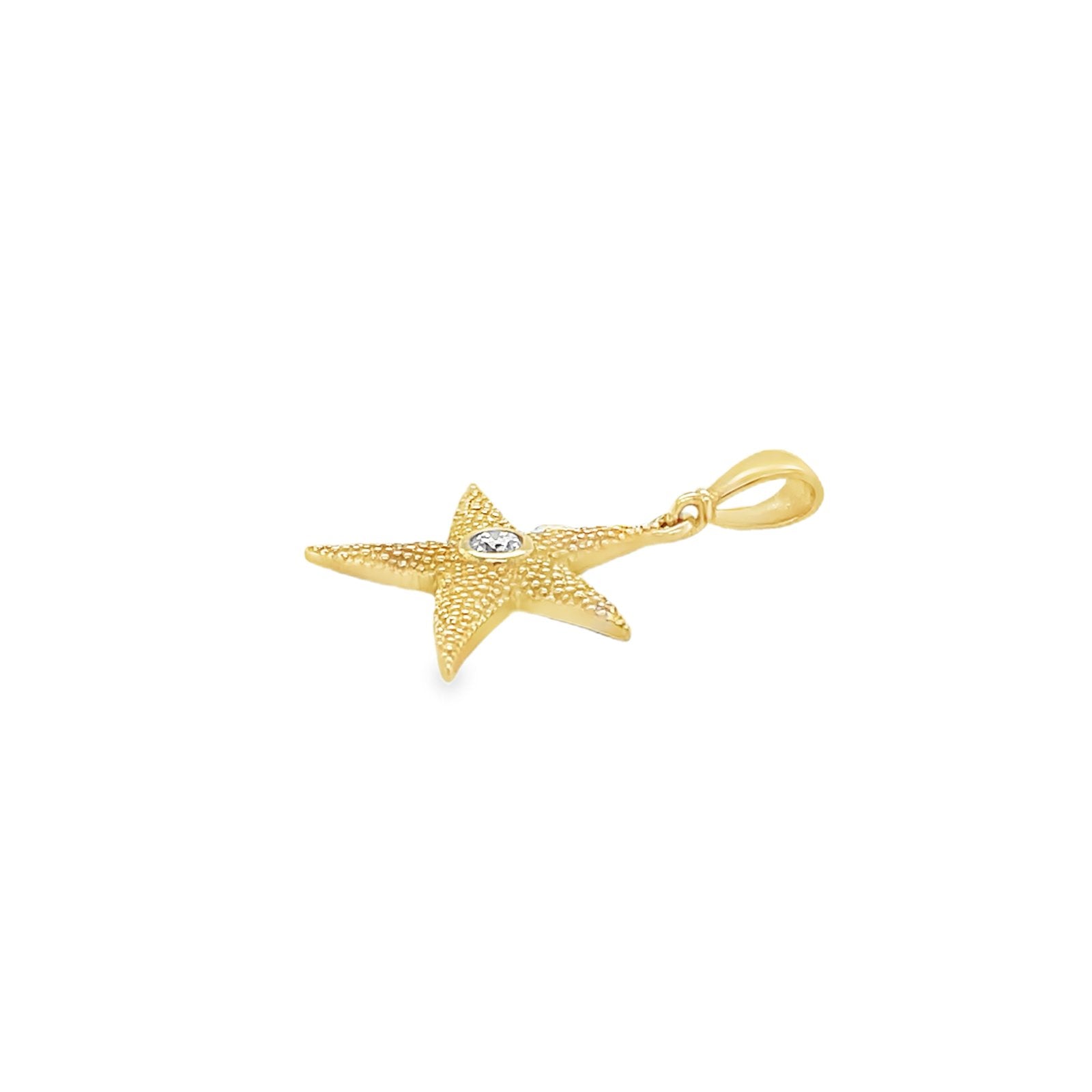 Set in 14K yellow gold, this shimmering Solitaire Starfish Pendant features a polished and textured finish with a single 0.05CTS at its center. Did you know starfish symbolize renewal and healing?