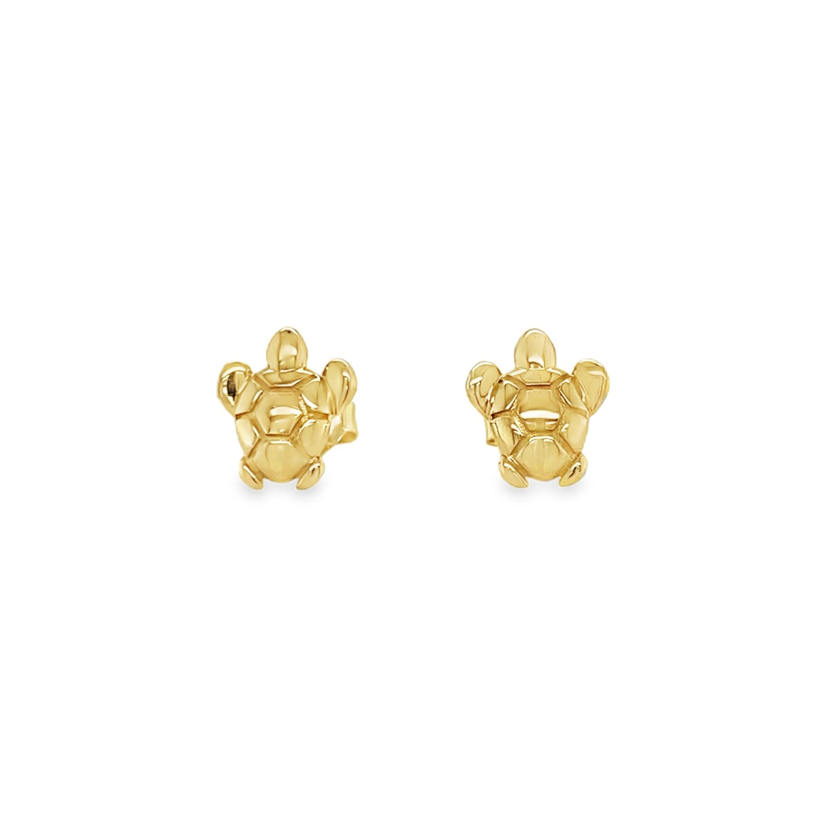 These Turtle Studs are set in 14K yellow gold; with an engraved design and polished finish, these earrings are perfect for those with a love for the ocean and/or as a charm to mark a memorable occasion, vacation, or special event. Did you know that turtles symbolize wisdom and knowledge?