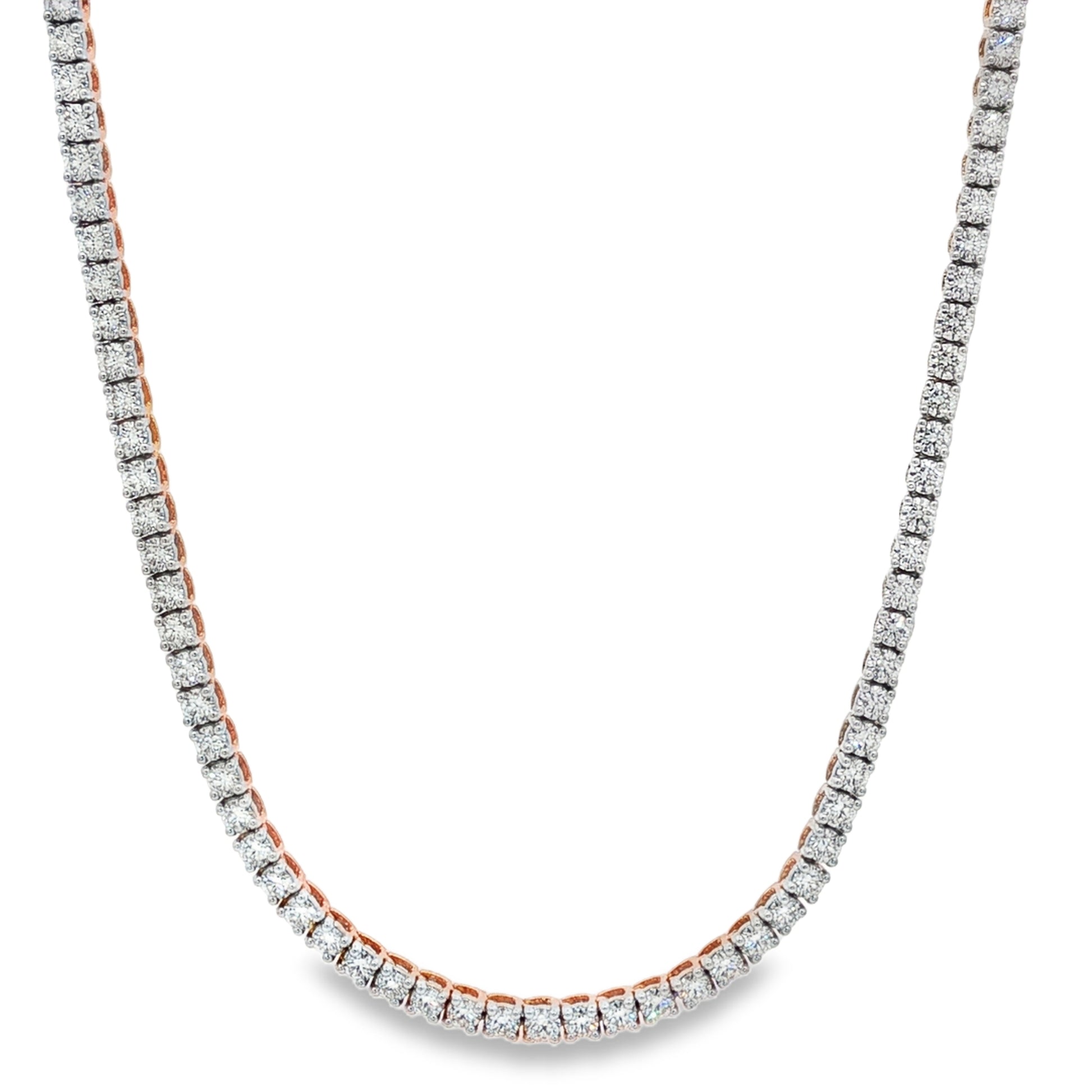 Set in 18K yellow gold, this striking Tennis Necklace features a sparkling series of 166 carefully set diamonds weighing a remarkable 9.133CTS.
