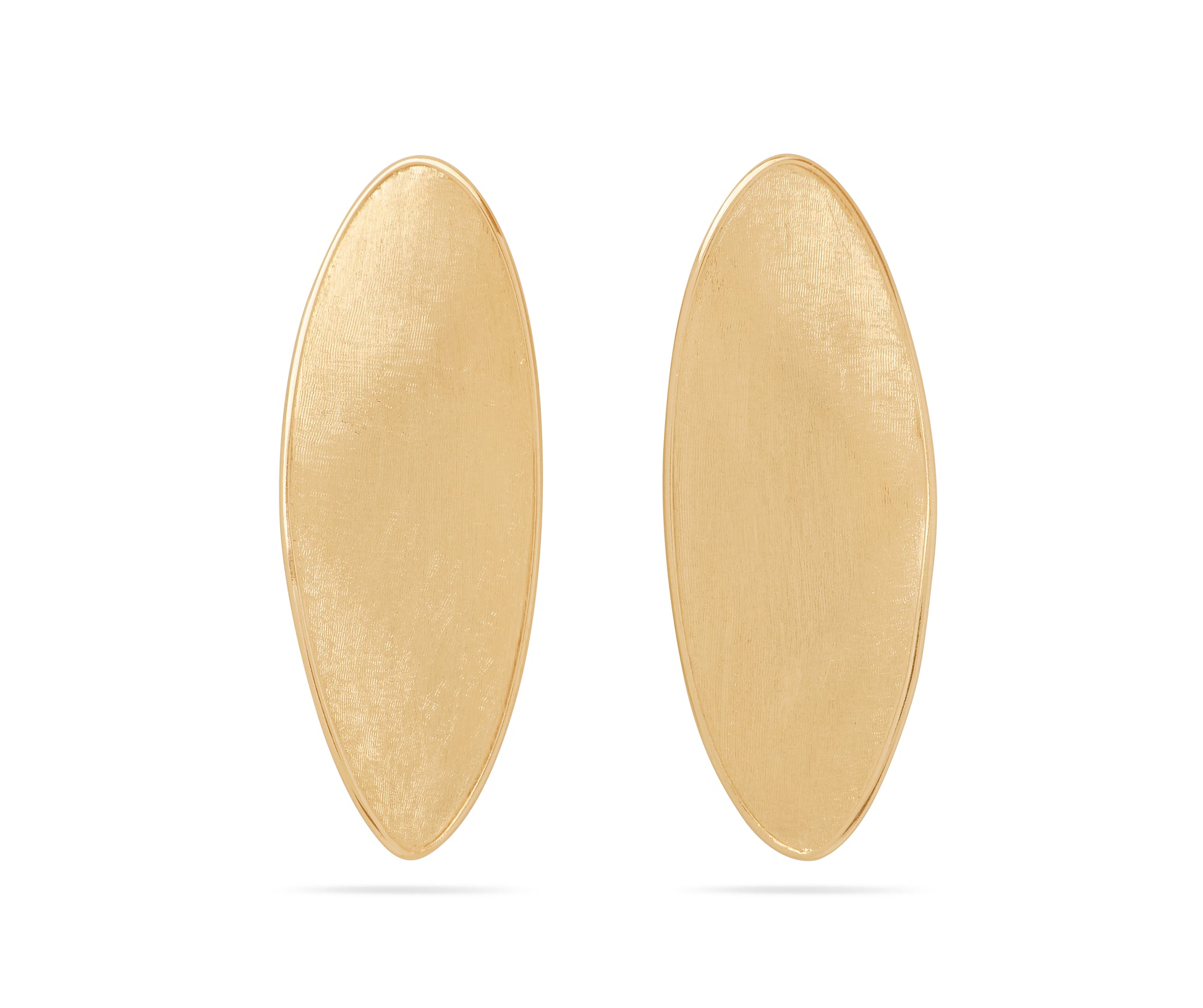 Engraved gold leaves and a brushed silky finish reflect forms of nature. Set in 18K yellow gold, these Studs from Marco Bicego's Lunaria Twist Collection feature silky petal-like adornments, hand-engraved using an ancient Florentine technique.